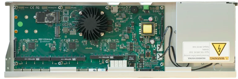 Introducing RB1100AHx4, 13x Gigabit Ethernet ports Router, powered by Annapurna Alpine AL21400 CPU with four Cortex A15 cores, clocked at 1.4GHz each, for a maximum throughput of up to 7.5Gbit. The device supports IPsec hardware acceleration (up to 2.2Gbps with AES128).
